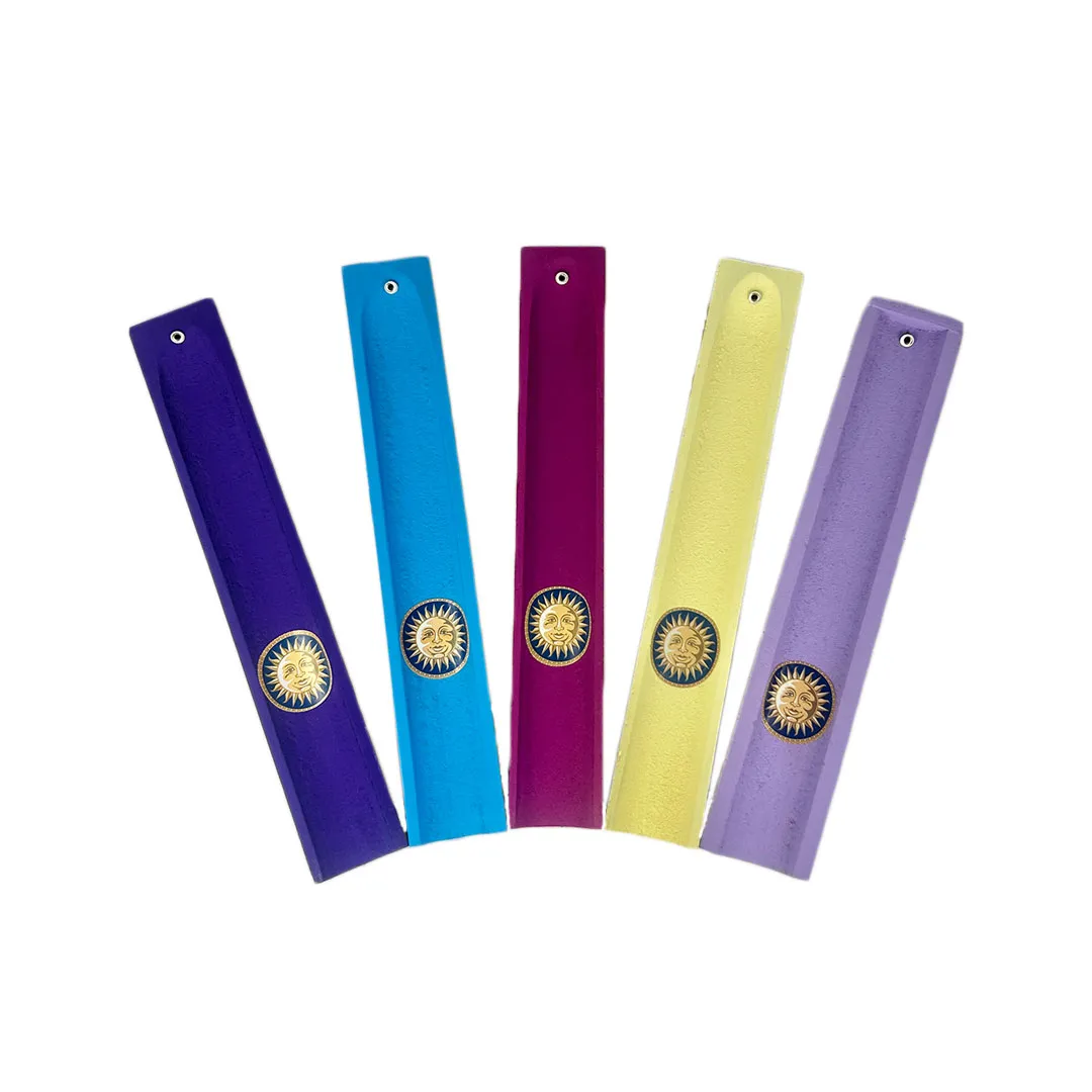 Incensário artesanal em madeira, ideal para queimar incensos em varetas com segurança e estilo. Disponível com o símbolo do Sol (energia e vitalidade) ou da Lua (calma e equilíbrio), une funcionalidade e beleza, trazendo harmonia e boas vibrações ao ambiente.